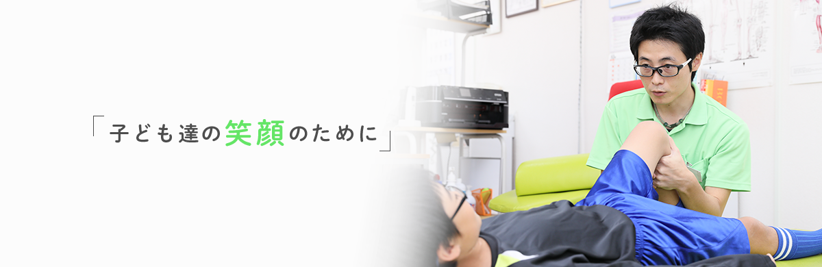またスポーツにおいて、ケガや痛みから満足なパフォーマンスができなくなる事も多々あります。早期の施術ケアは運動機能、パフォーマンスに好影響を与え、症状改善に差が出てくるはずです。このページを目にした方にはそれを充分に理解して頂き、ご自身の体調あるいはお子様の体調に不安があれば、お早めにご相談くださることを願っています。子供たちは全ての人にとって大切な「たからもの」です。元気で楽しく、そして充実している姿を見る事を保護者の皆様と同じように喜びと感じているからこそ、施術に関しても妥協なく取り組んでおります。
