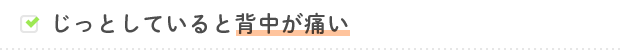 鹿児島の方言で「壁(へっ)が出る」と言われる症状です。デスクワークや立ちっぱなしになっていると、起こってくる鈍いイヤな痛みです。症状の出始めは軽度ですが、徐々に鈍痛は強くなり精神的にもストレスになってきます。けれど、ご安心ください。当院ではとっておきの解決策をご用意しております。お気軽にまずはご相談ください。
